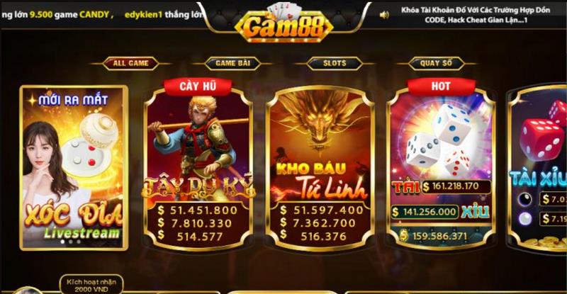 Cổng game bài đổi thưởng Gam88 Club được phát triển và vận hành theo hướng của những cổng game uy tín hàng đầu. Hiện tại, sân chơi nổi tiếng với 3 sảnh cược chính bao gồm: game bài, game quay hũ, tài xỉu.